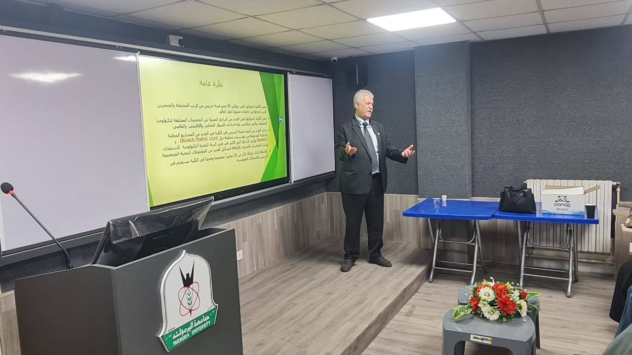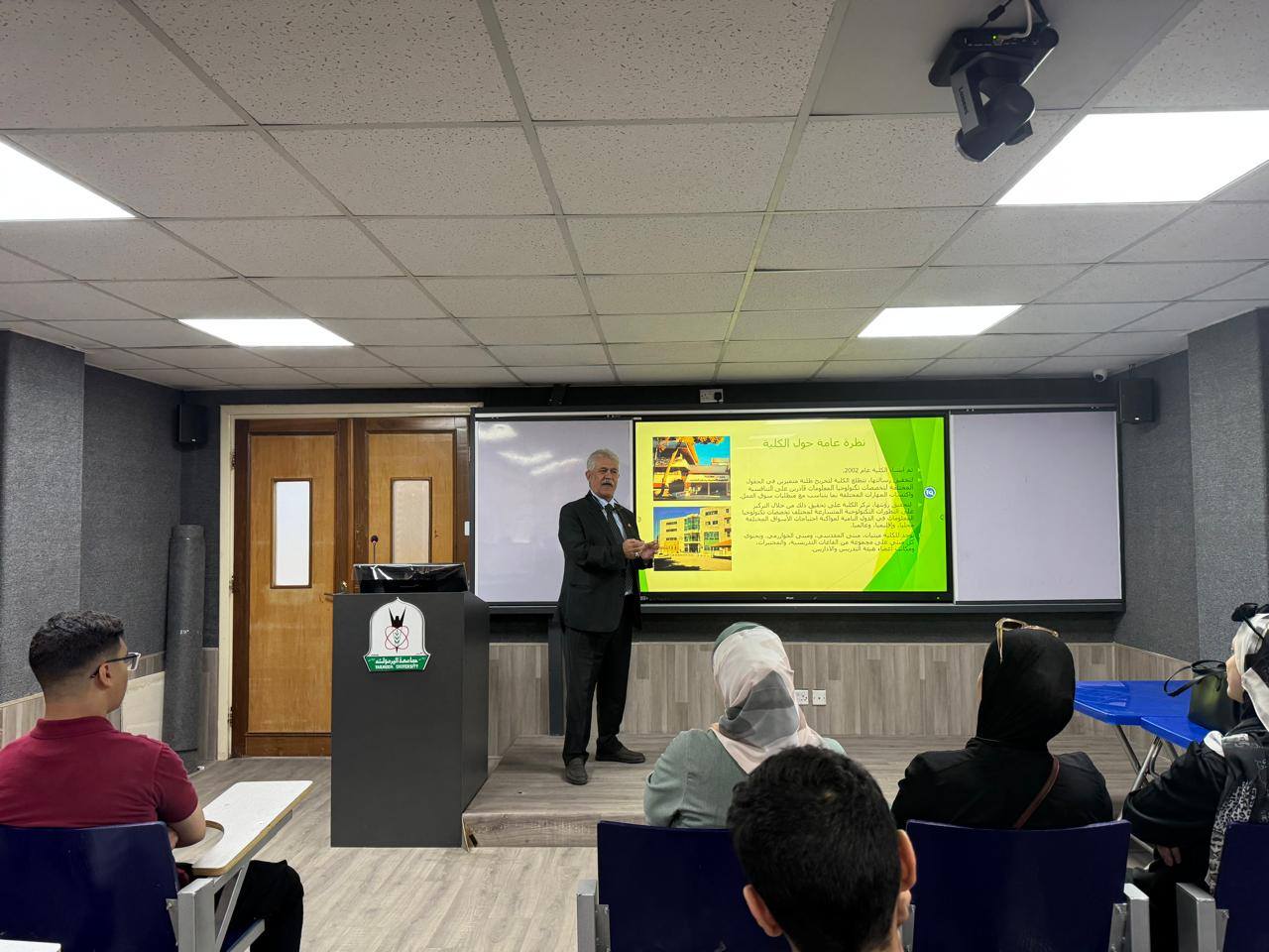 During the visit, Professor Imad Shawqafah presented a comprehensive introductory lecture about the college, its academic departments, and its scientific and research achievements, in addition to the quality programs it offers that meet the labor market's demands in the fields of artificial intelligence, information security, and software engineering.