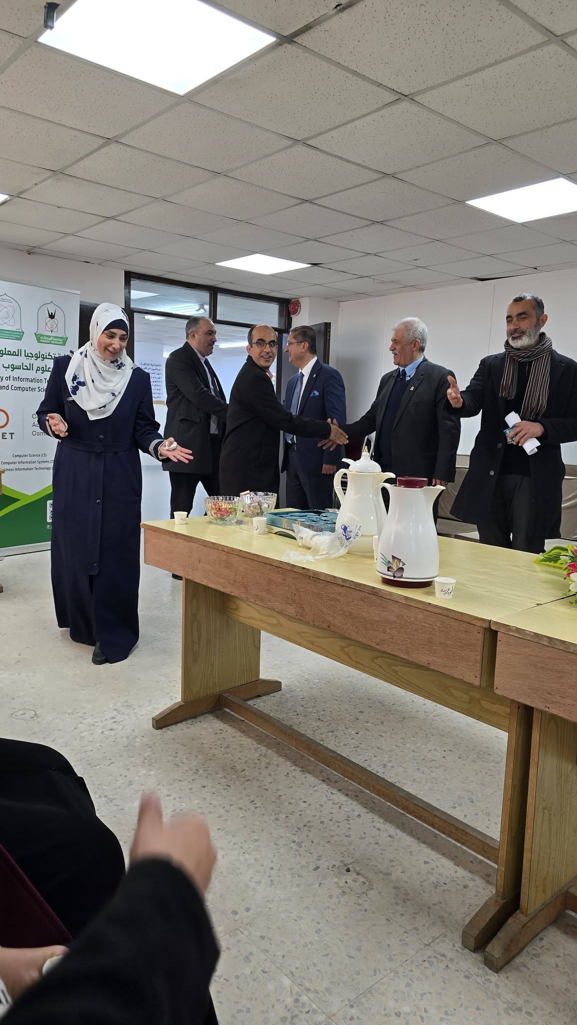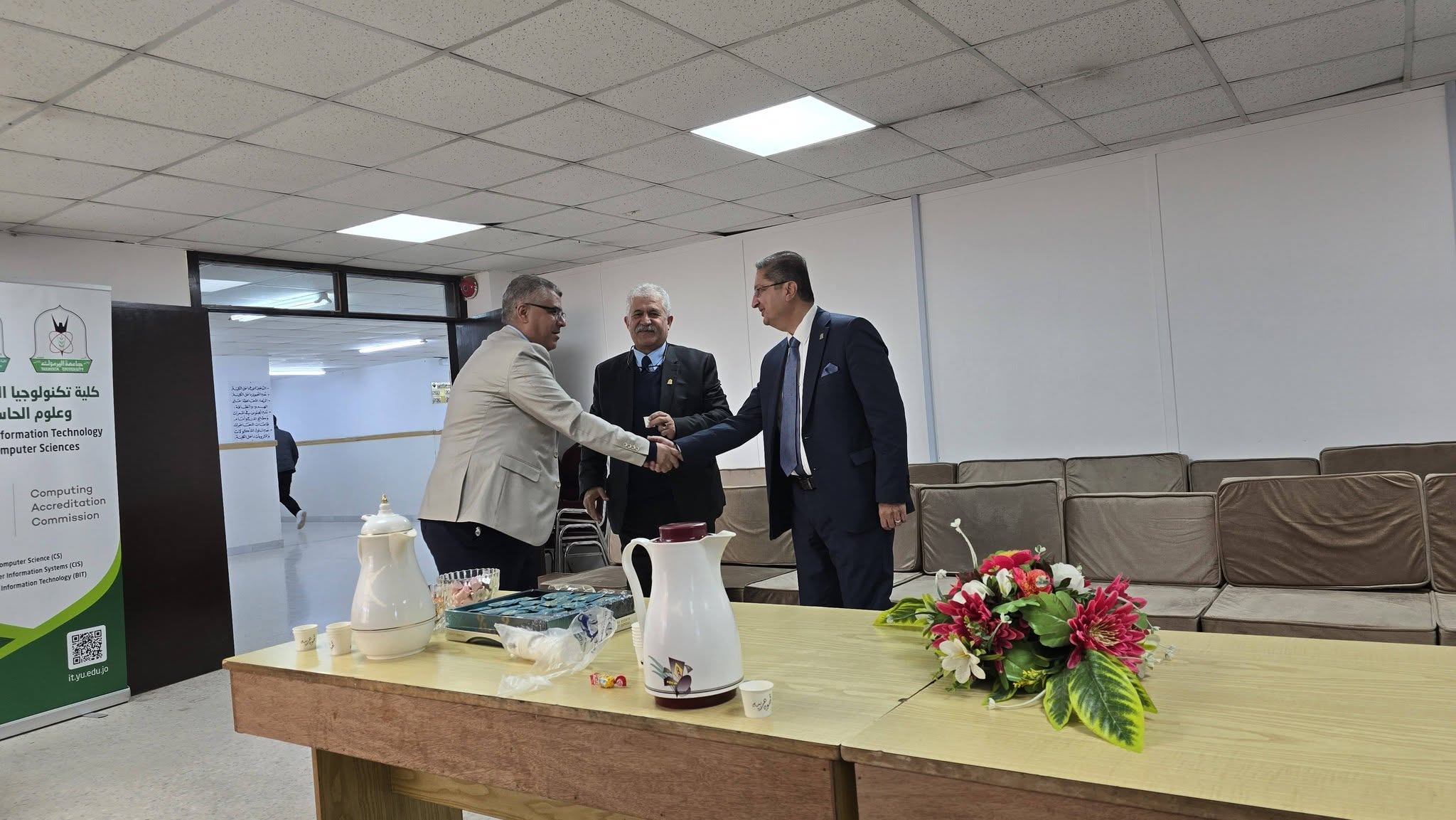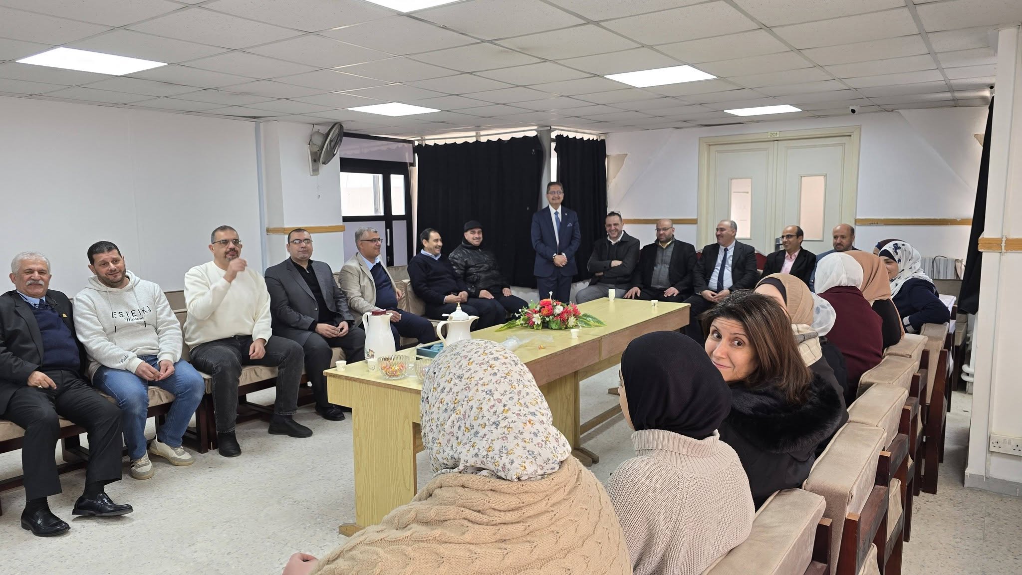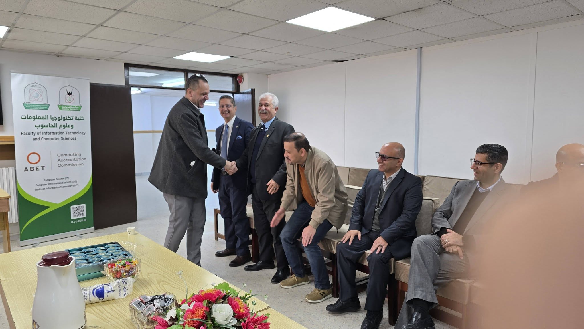 حيث قدم عميد الكلية الدكتور قاسم الردايدة بهذه المناسبة السعيدة خالص التهاني لأسرة الكلية من أعضاء الهيئتين التدريسية والإدارية والطلبة، داعيا الله العلي القدير أن يعيد هذا العيد على وطننا الغالي وقيادتنا والأمتين العربية والإسلامية بالخير واليمن والبركات. وان يحفظ الله الاردن وجامعتنا الحبيبة ويرعاها بعين رعايته.