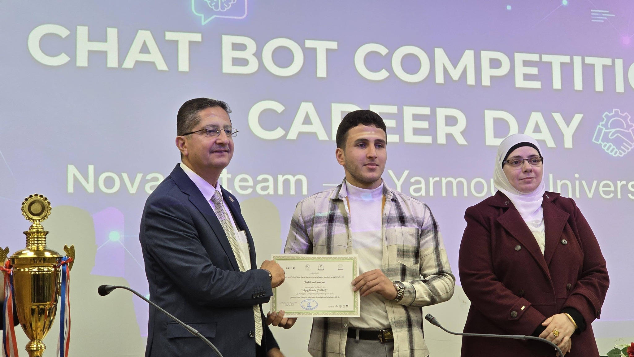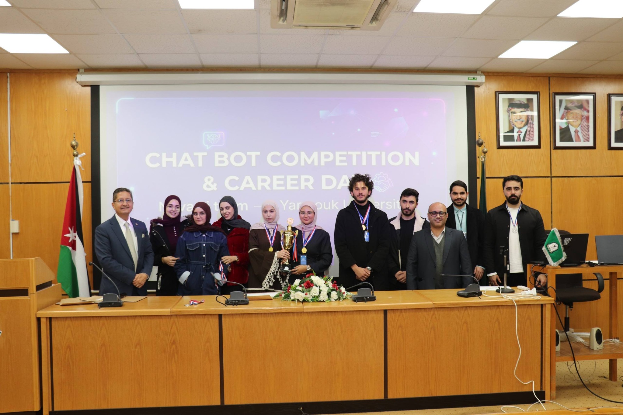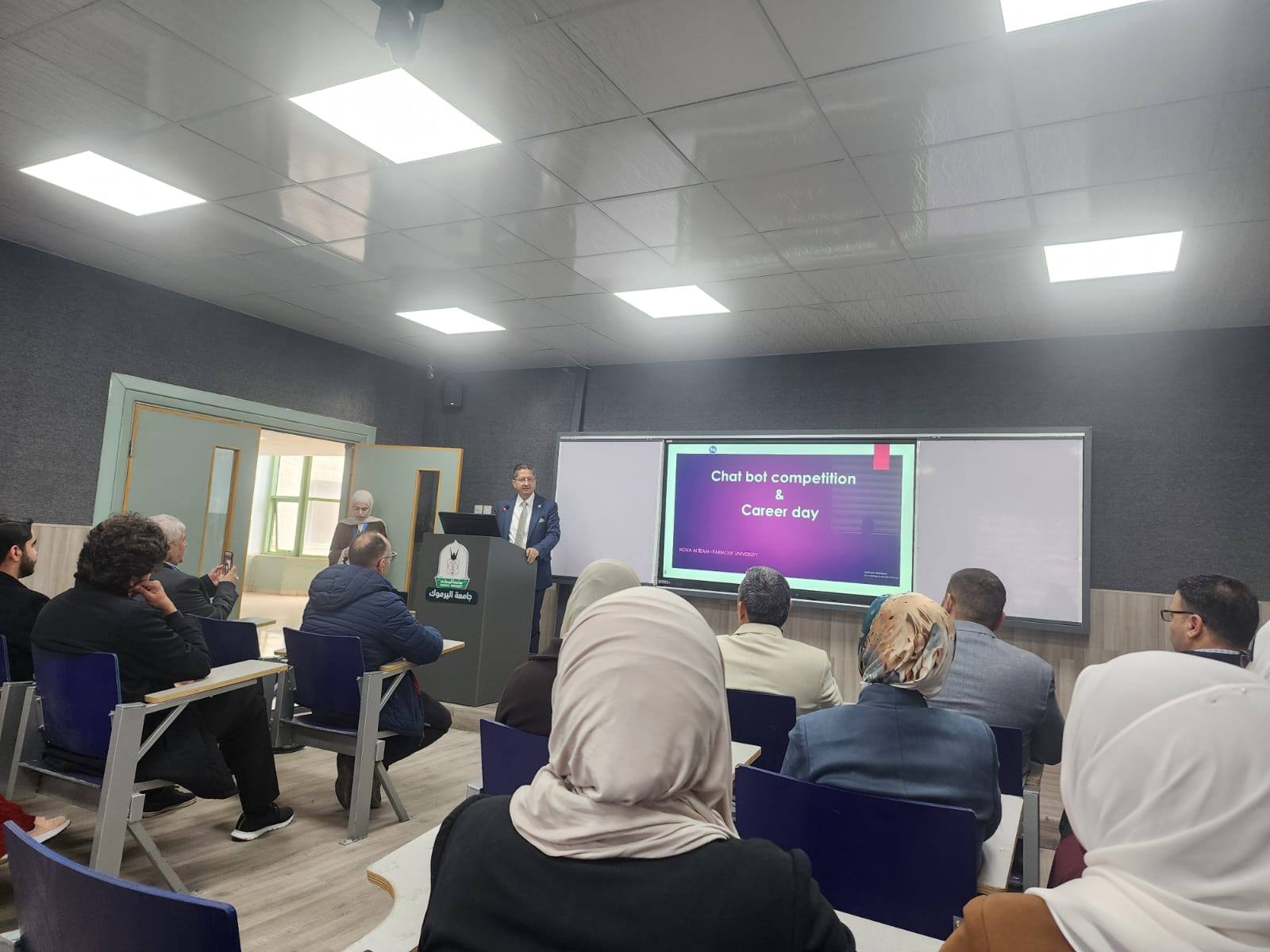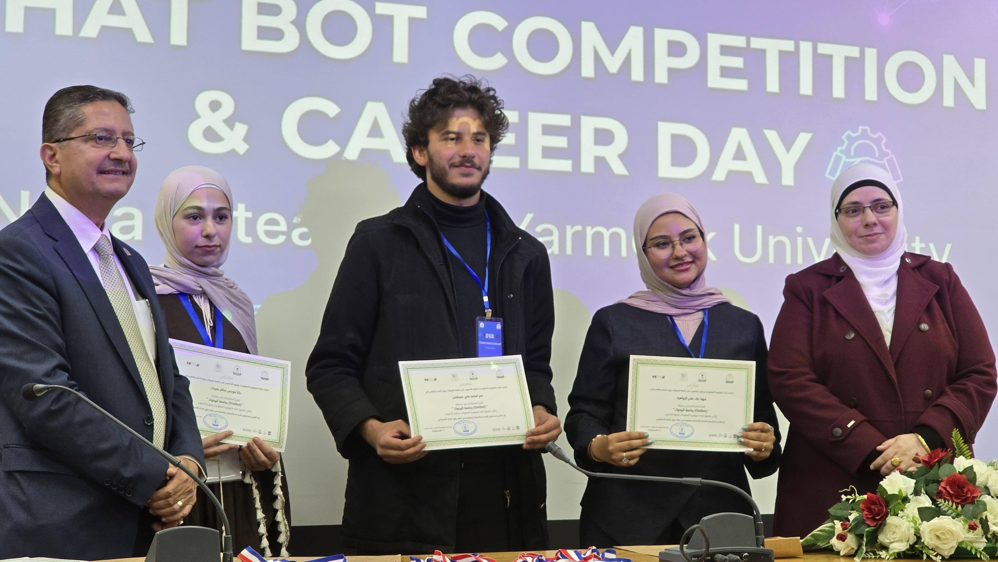 نظمت كلية تكنولوجيا المعلومات وعلوم الحاسوب في جامعة اليرموك اليوم المفتوح للمشاريع ومسابقة المحاور الذكي (chatbot) بمشاركة مميزة ومتنوعة من قبل الطلاب الذين قدموا مشاريع رائعة متميزة في مجال الذكاء الأصطناعي. حيث ان ارتباط الذكاء الأصطناعي بتطبيقات عملية اصبحت محور الاعمال فقد تم تنظيم هذه المسابقة والتي هدفت إلى تطوير محاور ذكي خاص بالجامعة، قادر على الإجابة عن مختلف الاستفسارات المتعلقة بالخدمات الجامعية والحياة الأكاديمية وبما يسهم في تعزيز تجربة الطلبة وتسهيل وصولهم للمعلومات.