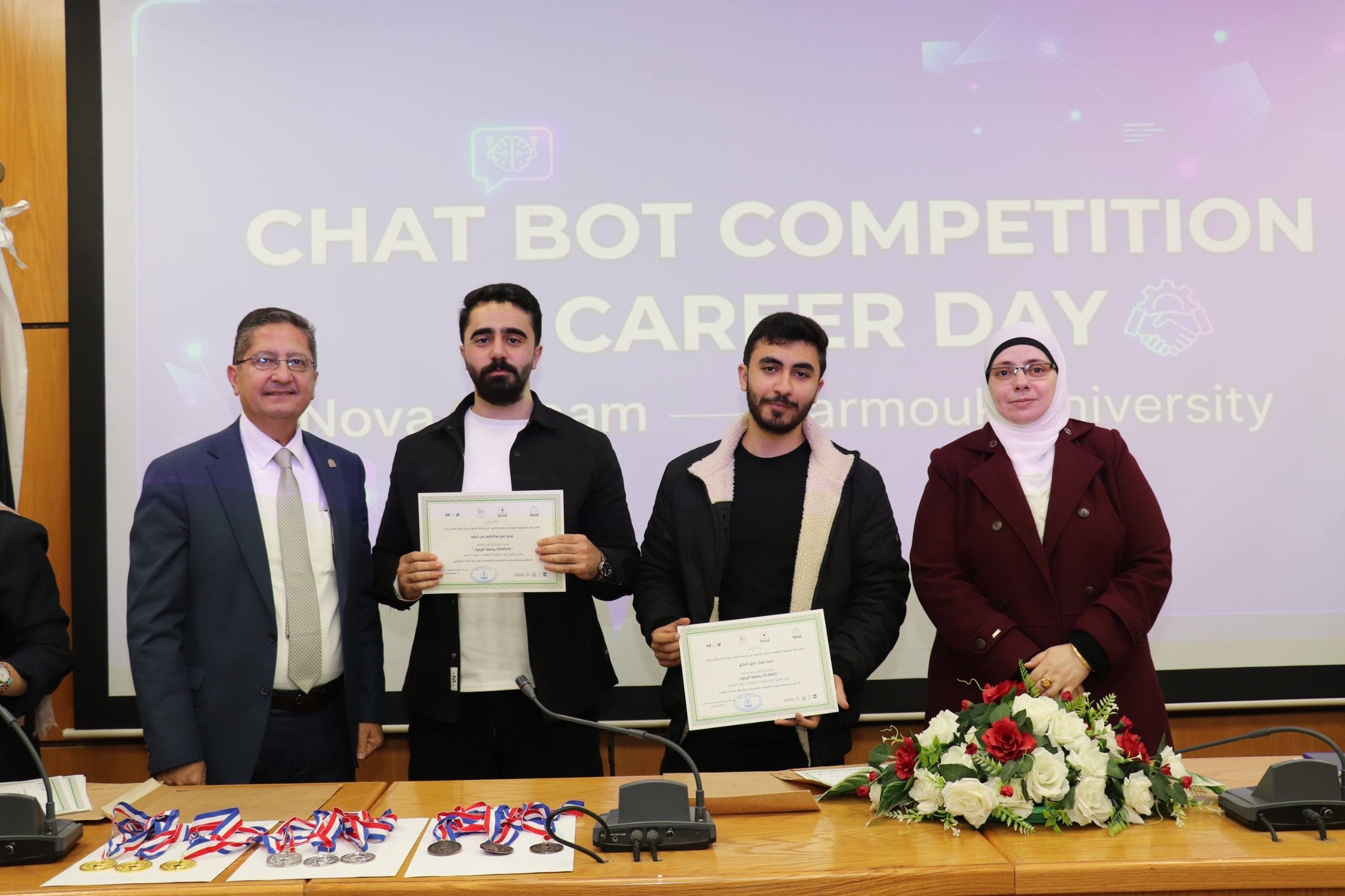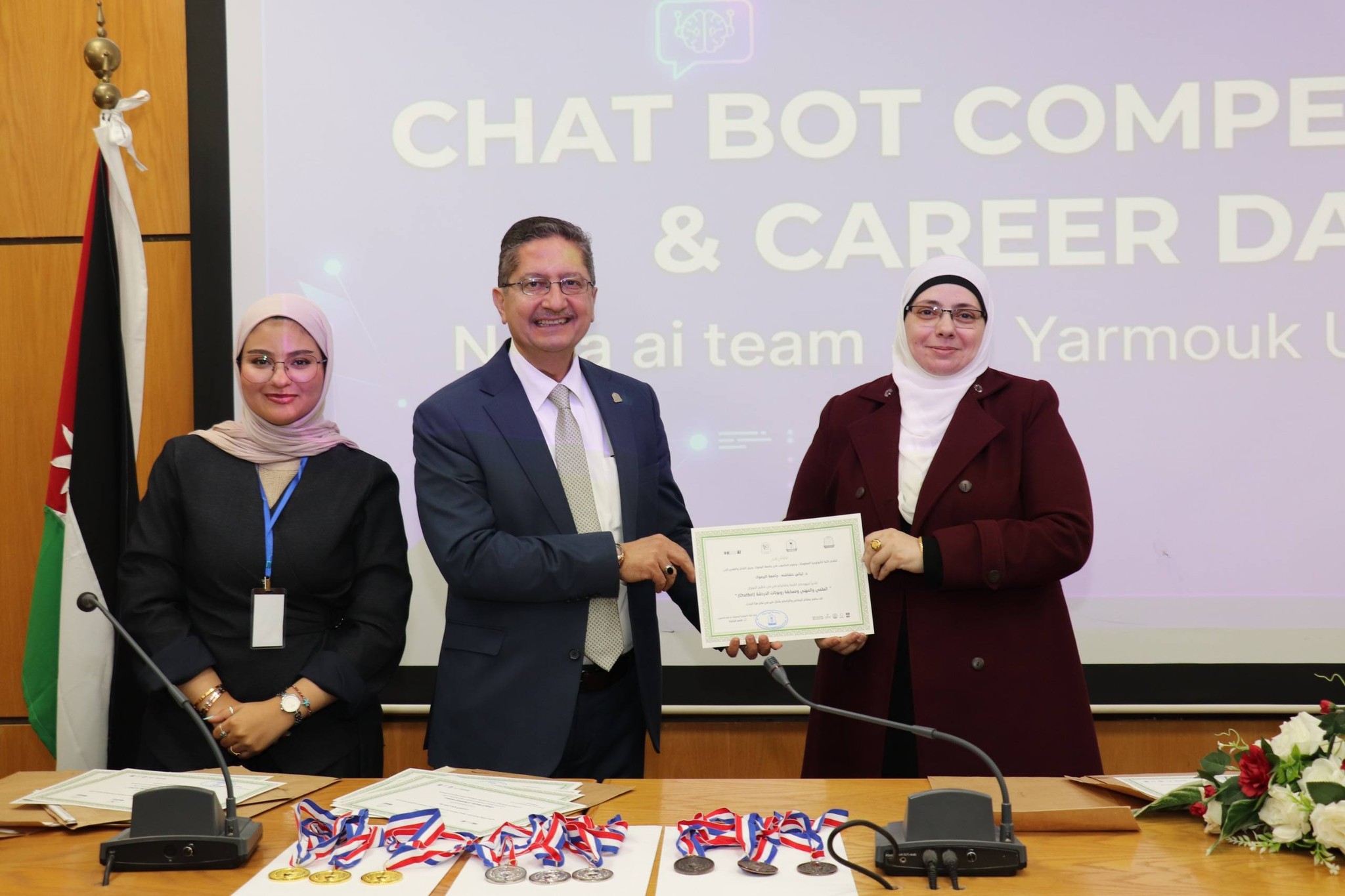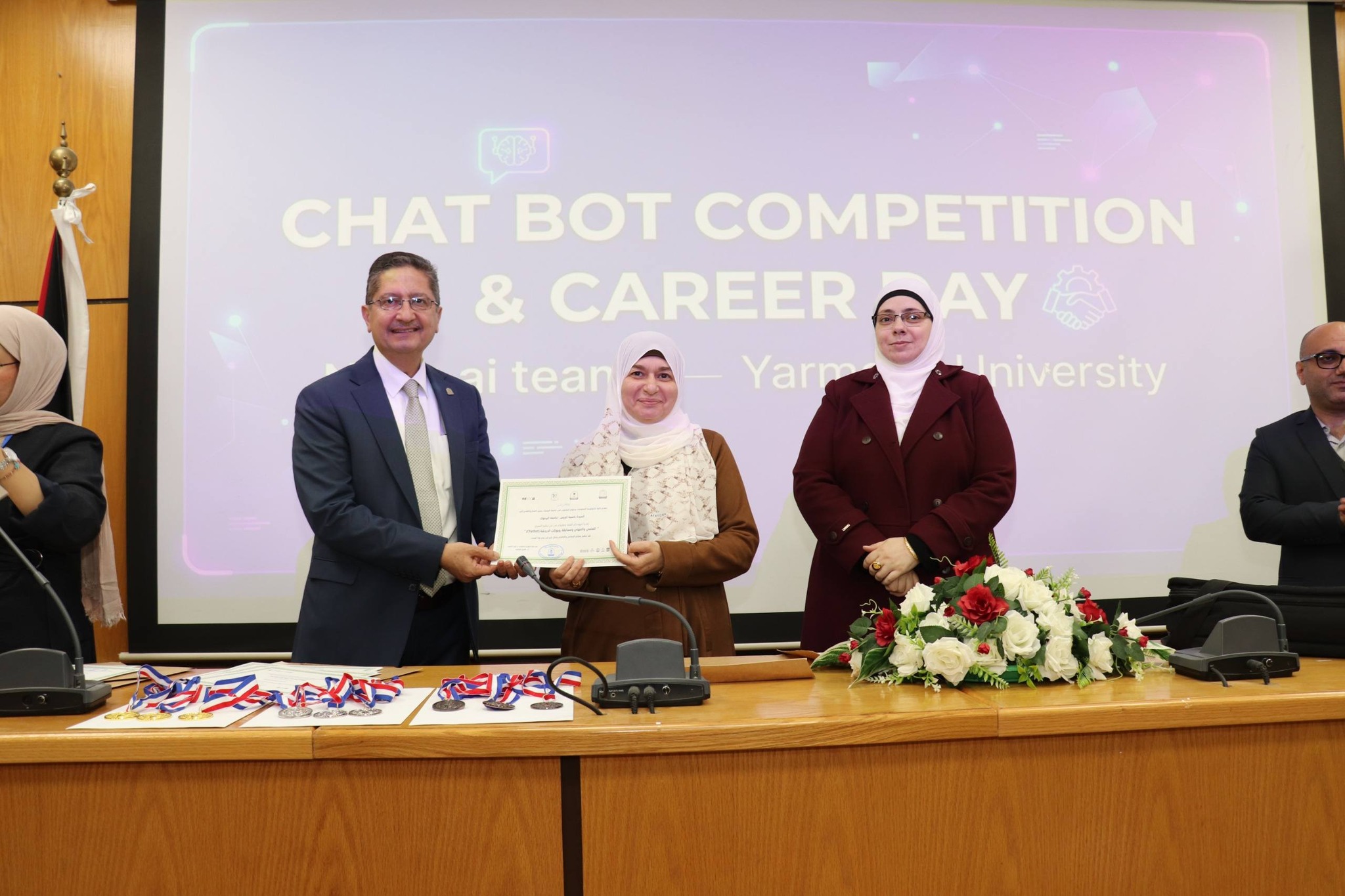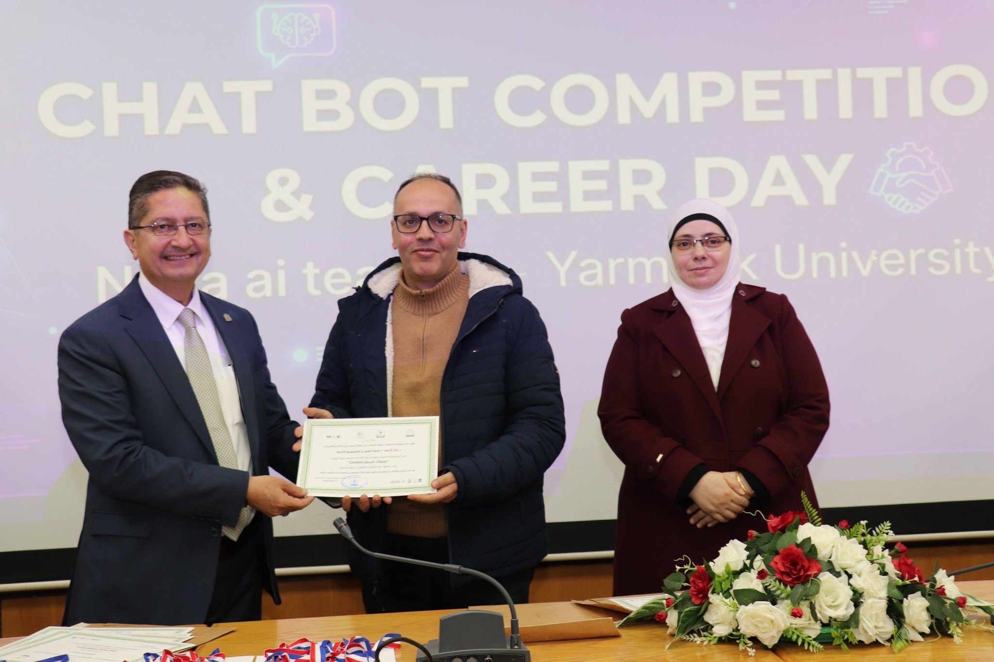 نظمت كلية تكنولوجيا المعلومات وعلوم الحاسوب في جامعة اليرموك اليوم المفتوح للمشاريع ومسابقة المحاور الذكي (chatbot) بمشاركة مميزة ومتنوعة من قبل الطلاب الذين قدموا مشاريع رائعة متميزة في مجال الذكاء الأصطناعي. حيث ان ارتباط الذكاء الأصطناعي بتطبيقات عملية اصبحت محور الاعمال فقد تم تنظيم هذه المسابقة والتي هدفت إلى تطوير محاور ذكي خاص بالجامعة، قادر على الإجابة عن مختلف الاستفسارات المتعلقة بالخدمات الجامعية والحياة الأكاديمية وبما يسهم في تعزيز تجربة الطلبة وتسهيل وصولهم للمعلومات.