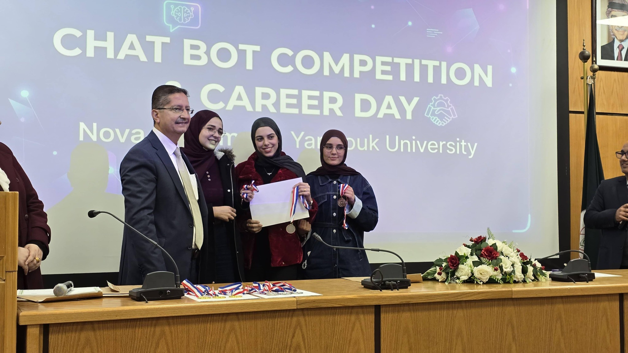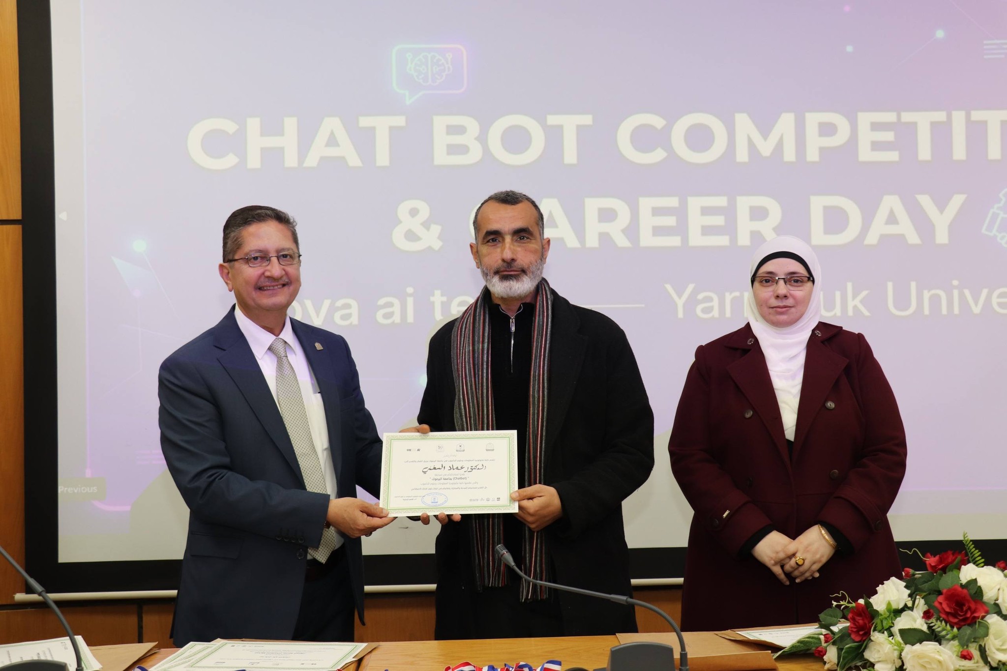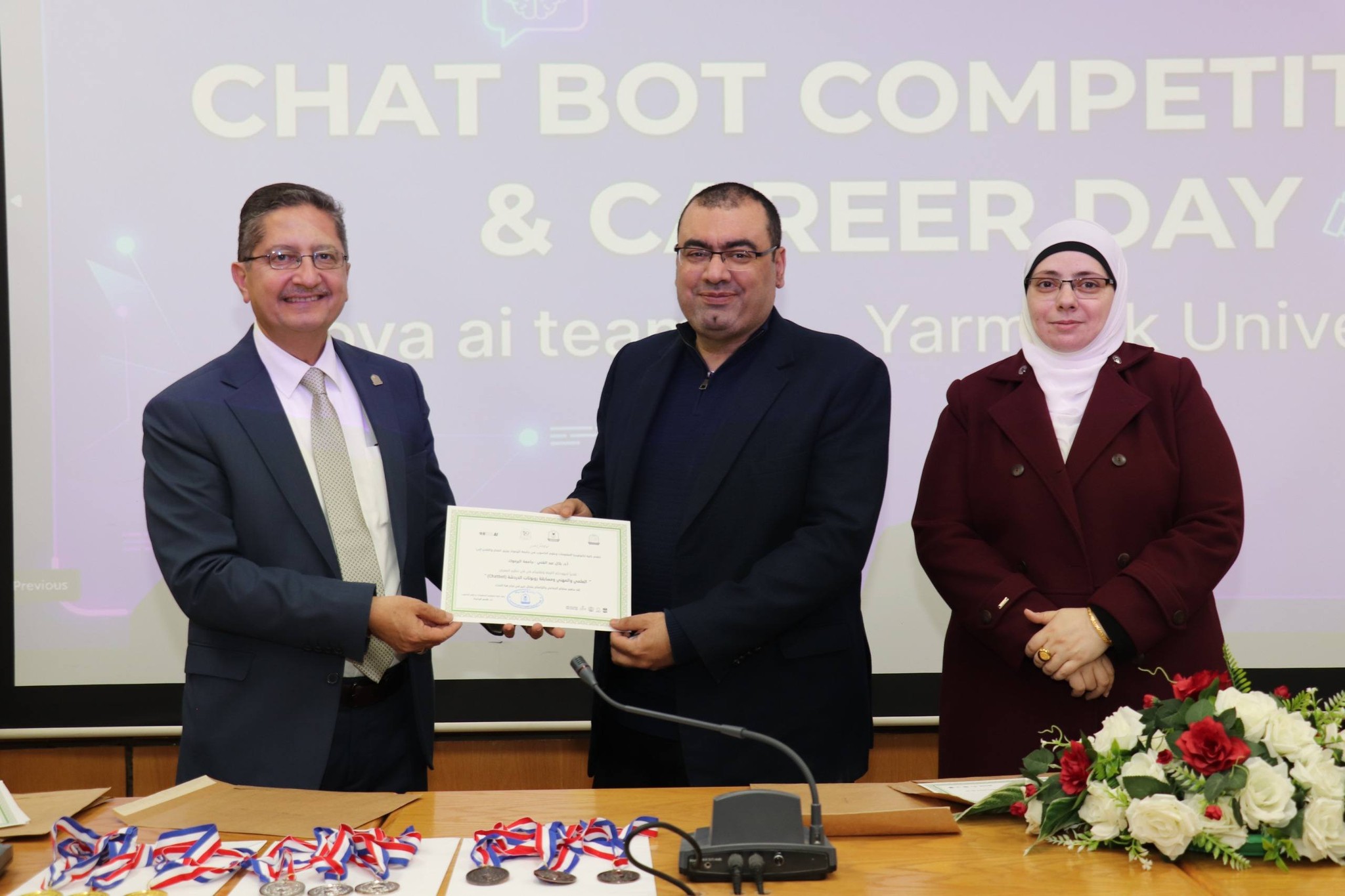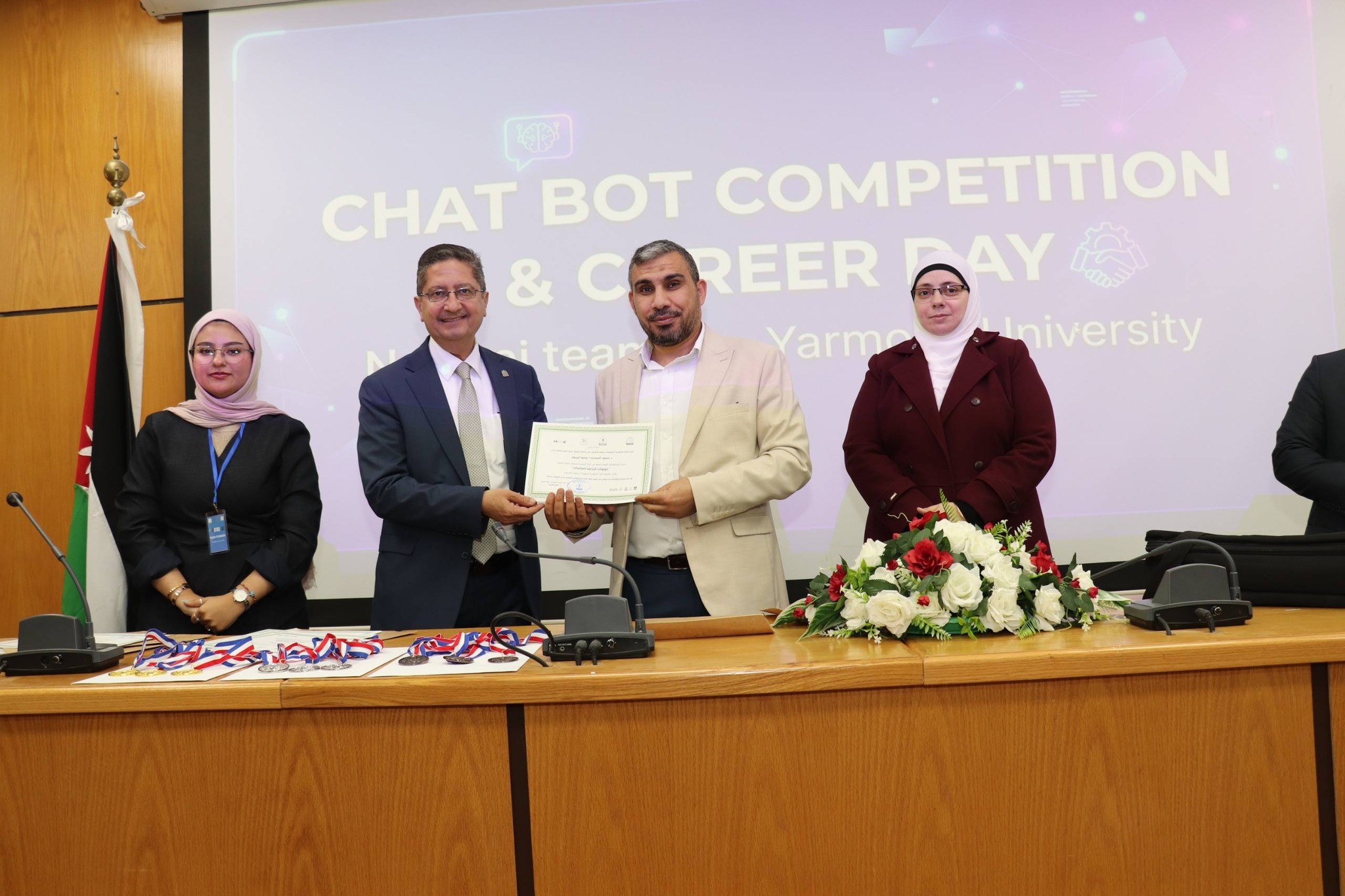 نظمت كلية تكنولوجيا المعلومات وعلوم الحاسوب في جامعة اليرموك اليوم المفتوح للمشاريع ومسابقة المحاور الذكي (chatbot) بمشاركة مميزة ومتنوعة من قبل الطلاب الذين قدموا مشاريع رائعة متميزة في مجال الذكاء الأصطناعي. حيث ان ارتباط الذكاء الأصطناعي بتطبيقات عملية اصبحت محور الاعمال فقد تم تنظيم هذه المسابقة والتي هدفت إلى تطوير محاور ذكي خاص بالجامعة، قادر على الإجابة عن مختلف الاستفسارات المتعلقة بالخدمات الجامعية والحياة الأكاديمية وبما يسهم في تعزيز تجربة الطلبة وتسهيل وصولهم للمعلومات.